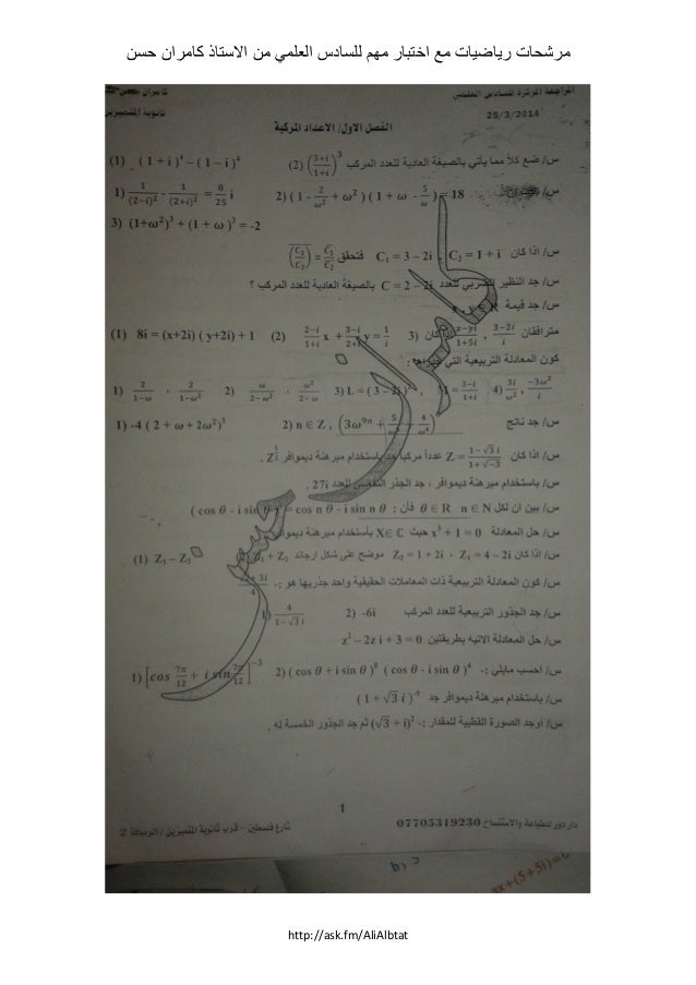 مرشحات رياضيات سادس علمي الاستاذ كامران حسن