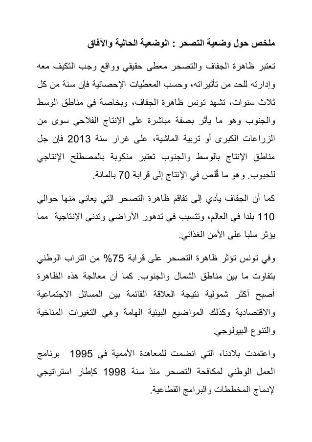Tunisia Abstract ملخص حول وضعية التصحر الوضعية الحالية والآفاق