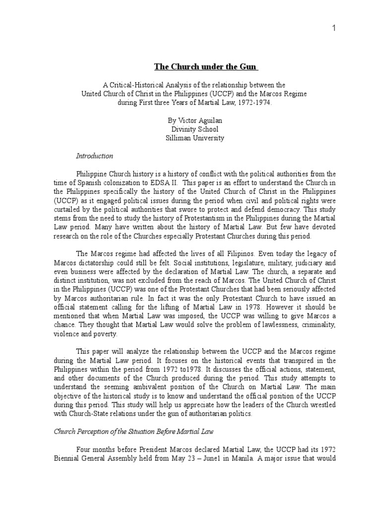 The Declaration Of Martial Law And Church Response Martial Law Philippines