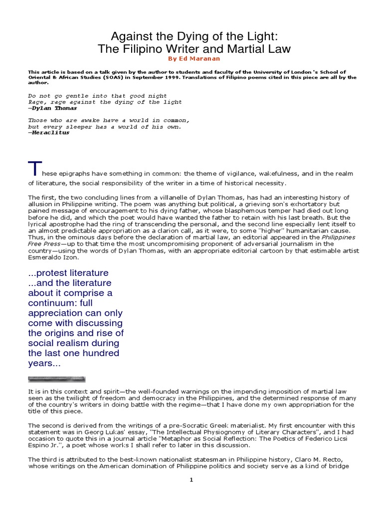 Martial Law In Mindanao Essay Tagalog