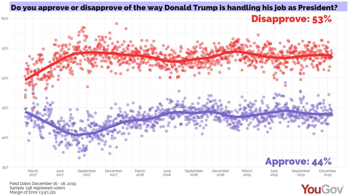 President Trump Daily Job Approval For December 16 2019 Yougov